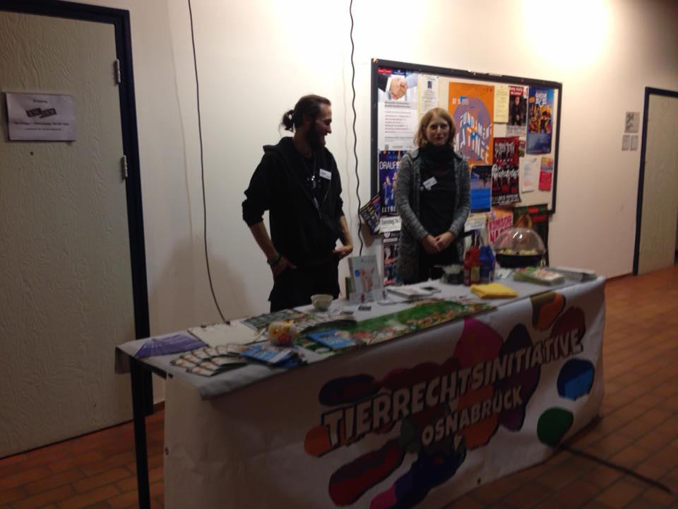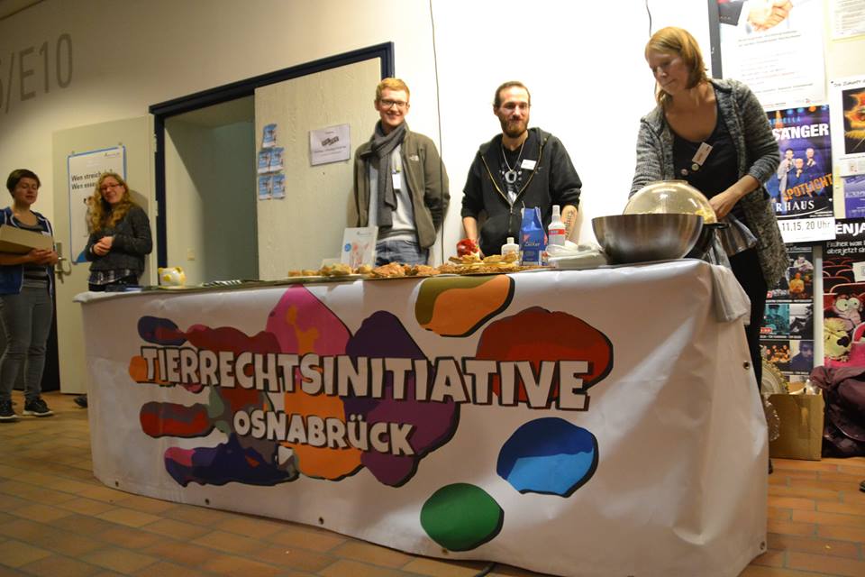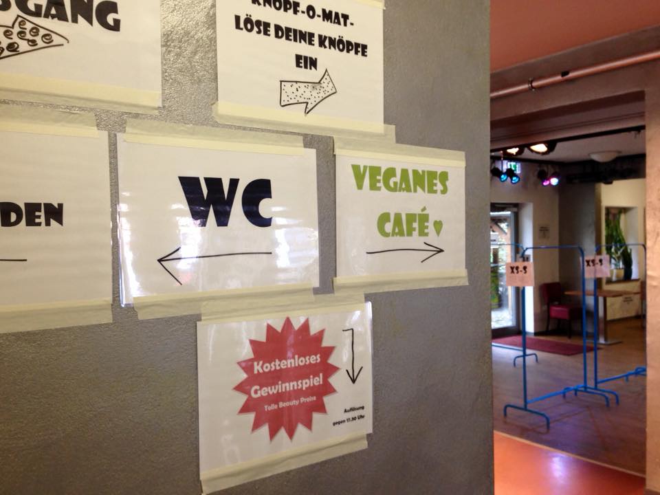 Am 14.11. fand im Ziegenbrink die Kleidertauschparty für Mädchen und junge Frauen statt. Was hatten wir dort zu suchen? – Natürlich sorgten wir mit Infomaterial und einem veganen Café für das leibliche Wohl der BesucherInnen und konnten mit einem riesigen Kuchenbüffet jeden Muffin-, Brownie-, Obstkuchen-, Zupfkuchen-, Blätterteig-Apfel-Hunger stillen. Die Rückmeldungen waren sehr erfreulich 🙂 Alles war selbstgebacken und der gesamte Gewinn kommt der Tierrechtsarbeit zugute.